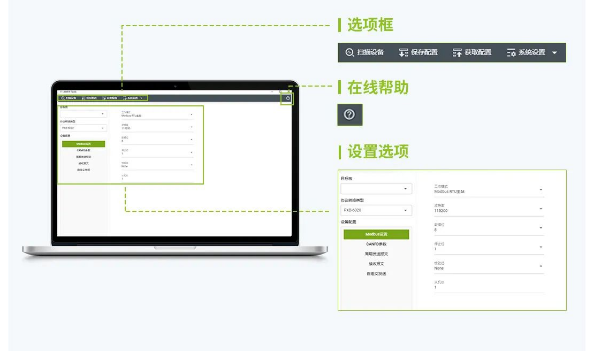 特性 | ·支持Modbus主站及从站; ·支持ModbusTCP及RTU; ·支持128组周期发送 ; ·支持128组白名单接收; ·支持自定义发送模式 | ·支持Modbus 站 ;, ·支持ModbusTCP及RTU; ·标准CANopen 从站 ;“提供标准EDS 文 件 ; · 支持12个TPDO,最大96个字节输出 · 支持12个RPDO, ·最大96个字节输入可更新设备 EDS | ·支持Modbus 主 站 ; ·支持Modbus TCP及RTU; ·标准DeviceNet 从 站 ; ·提供标准EDS 文 件 ; ·最大支持512字节轮询输入; ·最大支持512字节轮询输出 | ·支持Modbus 主站从站 ·支持Modbus TCP及RTU; “标准J1939协议 | ·支持Modbus主站 ; ·支持Modbus TCP及RTU;标准OPCUA服务器; ·最大支持32个 对 象 ; ·每个对象最大支持64个变量; ·支持常见的数据类型操作 | |||